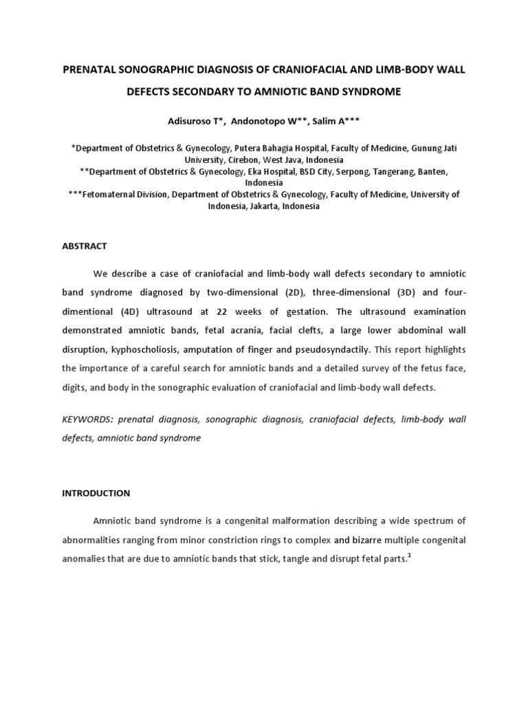 Amniotic Band Syndrome PDF Obstetrics Human Pregnancy