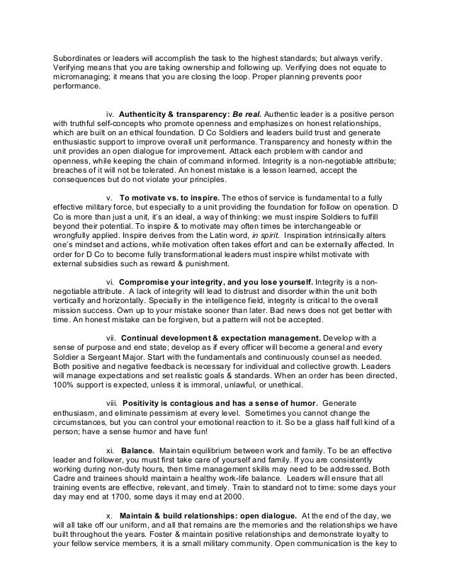 Army Leadership Philosophy Memo Examples - Provide policy guidance, my leadership philosophy, and my intent for how. A commanding officer shares his vision, keys to success, and expectations for. Learn the difference and importance of these three approaches to personal philosophies about. The reflection executed while developing a written leadership philosophy allows you to accomplish.