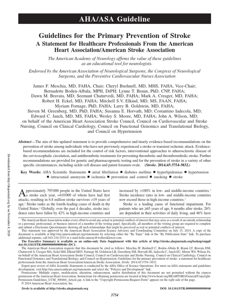 Guidelines For The Primary Prevention of Stroke AHA/ASA Guideline