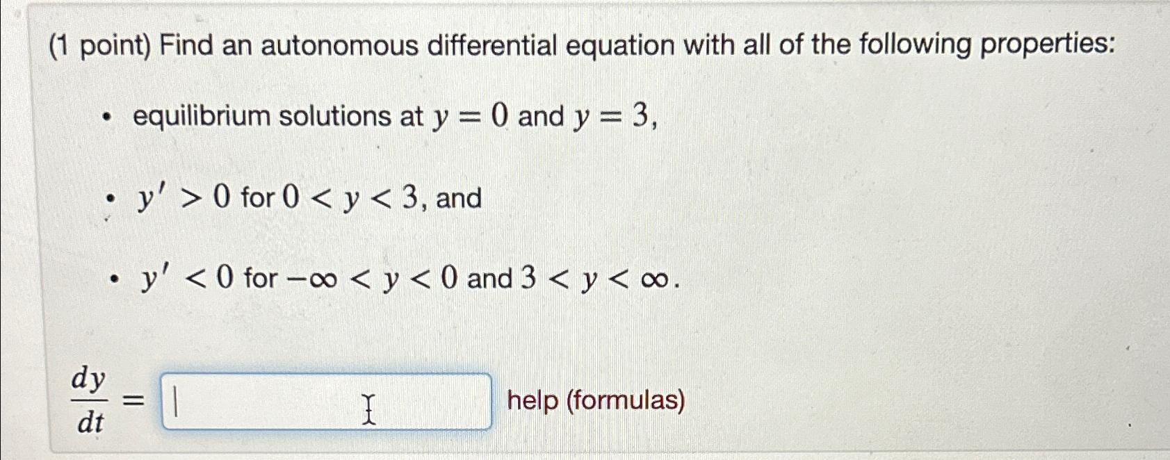 Solved (1 point) Find an autonomous differential equation