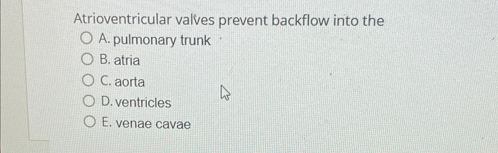 Solved Atrioventricular valves prevent backflow into theA.