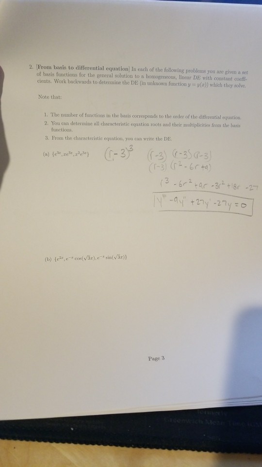 Solved 3. (From basis to differential equation) In each of