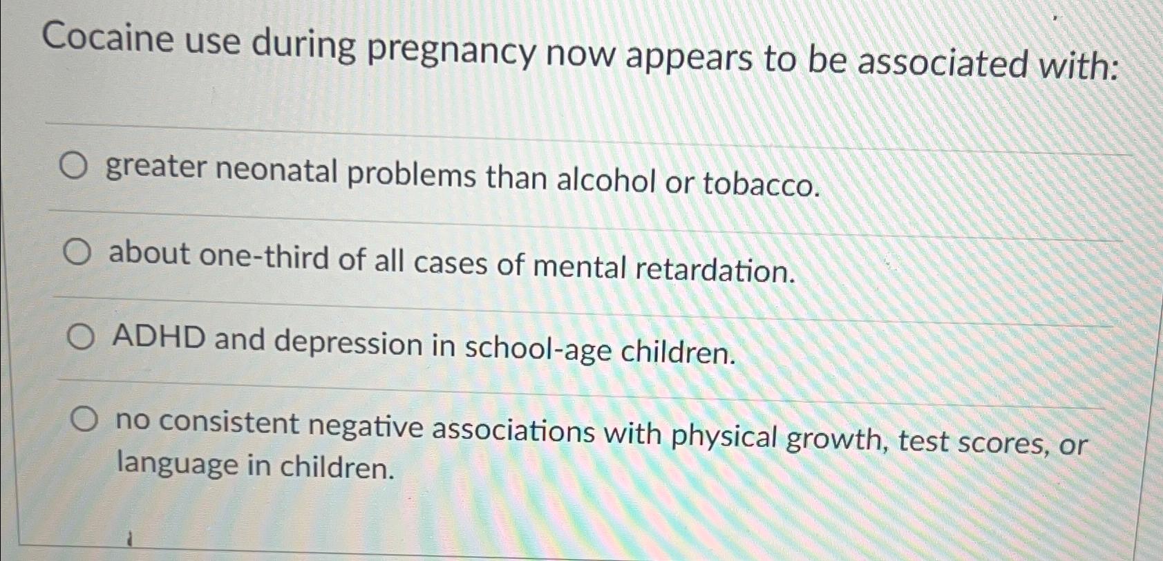 Solved Cocaine use during pregnancy now appears to be