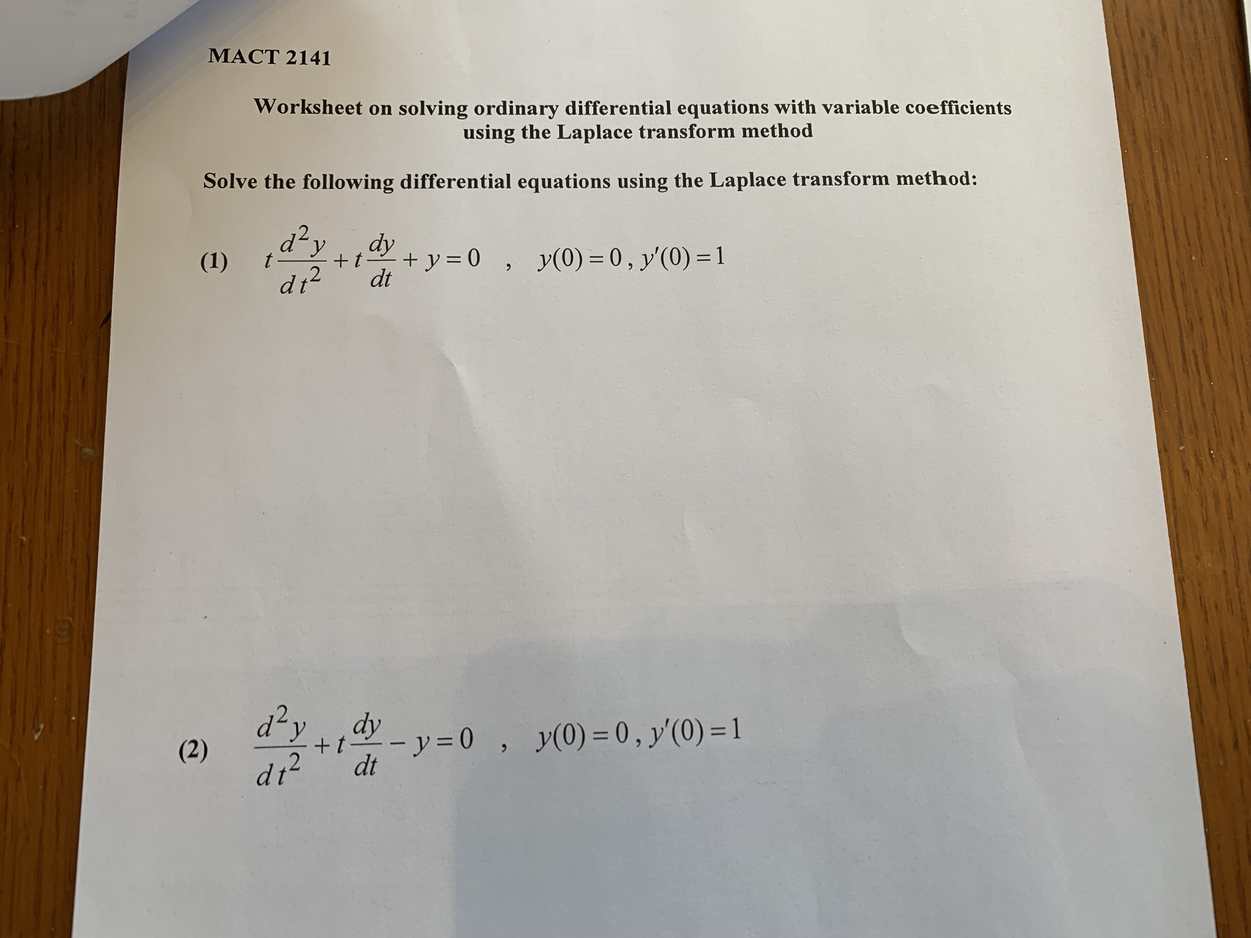 Solved Worksheet on solving ordinary differential equations