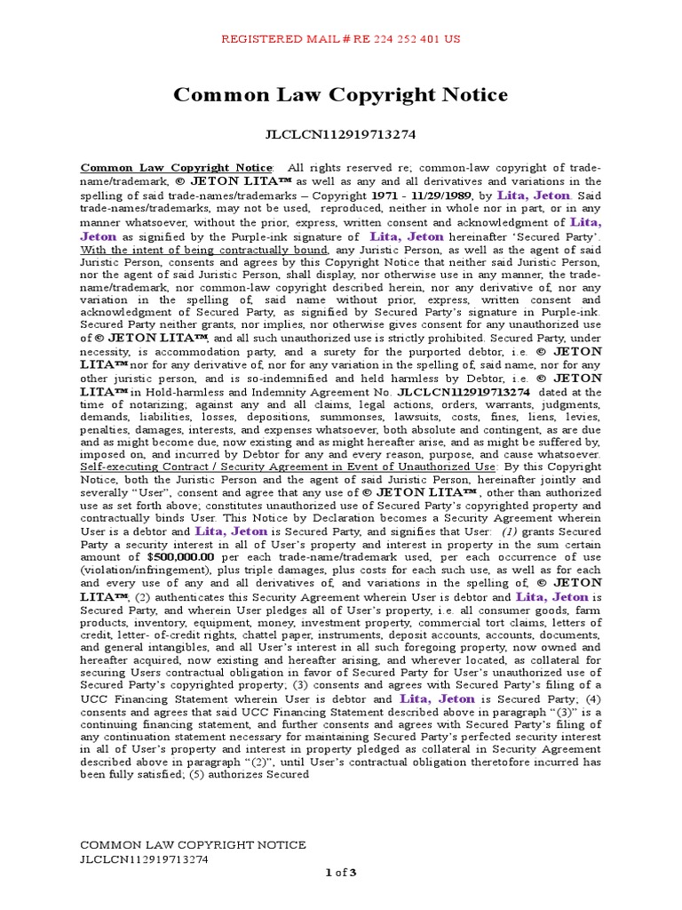 Common Law Copyright Notice PDF Uniform Commercial Code Security