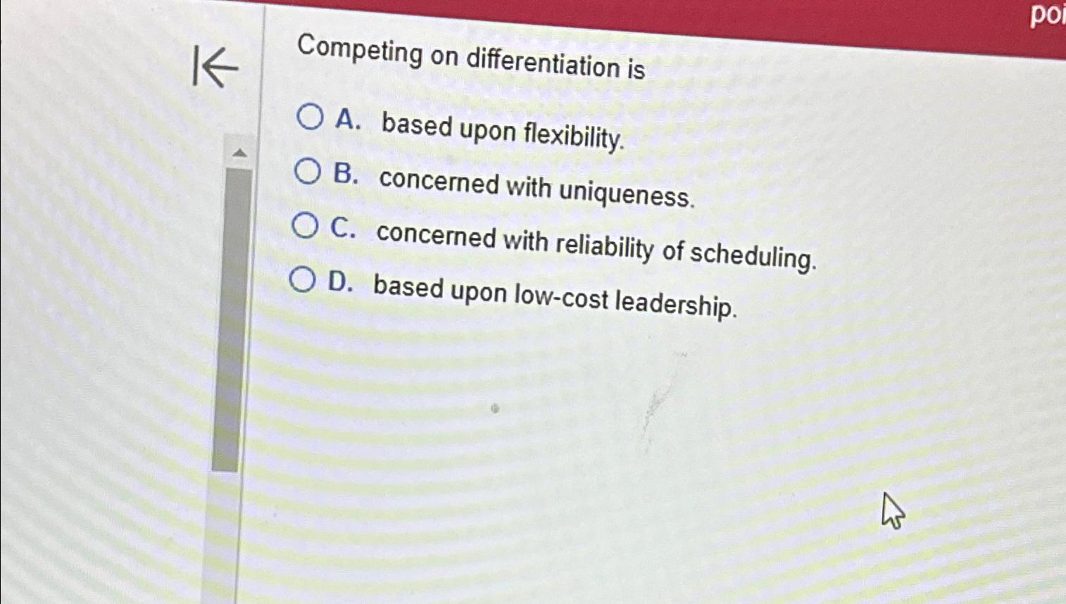 Solved Competing on differentiation isA. concerned with