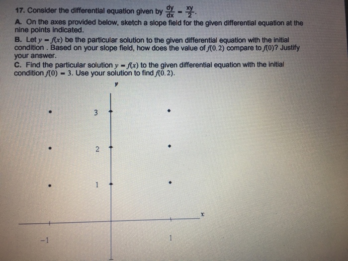 How do you solve dy dx = xy2? (a) (b) (c) on the axes provided,. Consider the differential equation given by dy/dx= xy/2. Let's separate our variables, ie, have. B) let y=f(x) be the particular solution to the.
