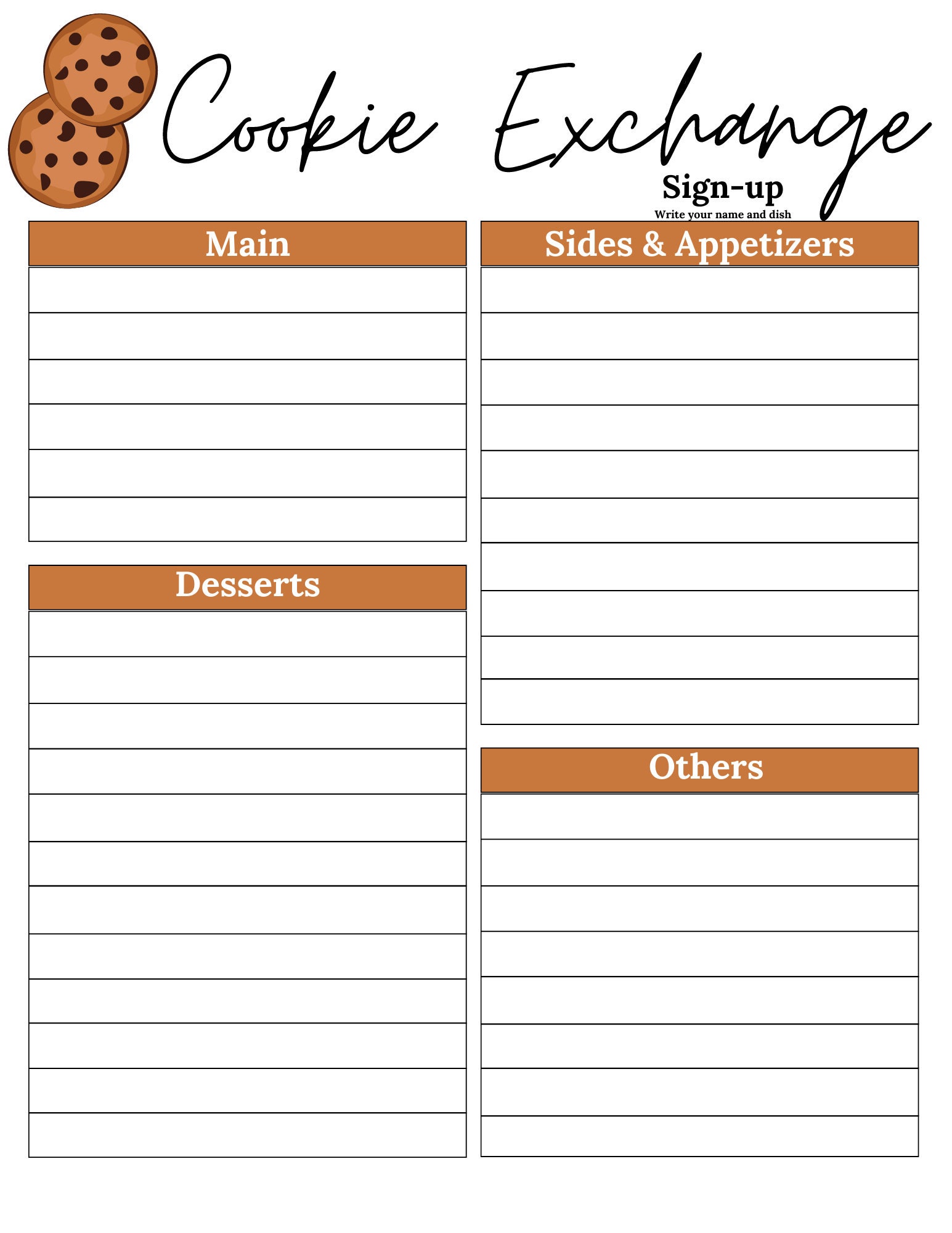 Cookie Exchange Sign up Sheet Cookie Sign up Sheet Cookie Etsy Canada