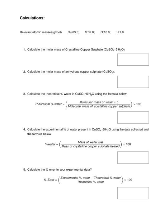 Solved DATA SHEET 1 Mass of crystalline CuSO4⋅5H2O weighed
