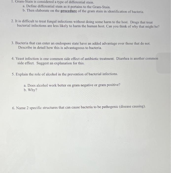 (Get Answer) DIFFERENTIAL STAIN GRAM STAIN 1. Define The Following