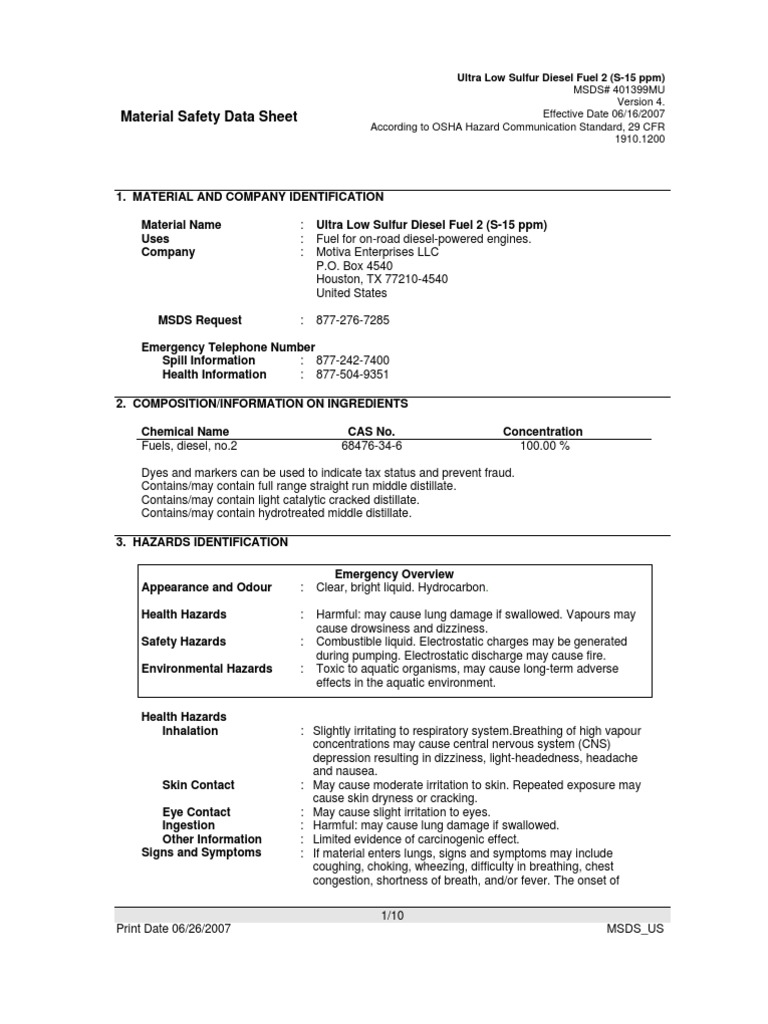 This document provides information on the hazards, composition, and emergency procedures of no. Prevention obtain special instructions before use. This document provides information on the hazards, composition, first aid, fire fighting and accidental release measures of automotive. 2 of 11 diesel fuel sds : 2 diesel fuel, a flammable liquid and.