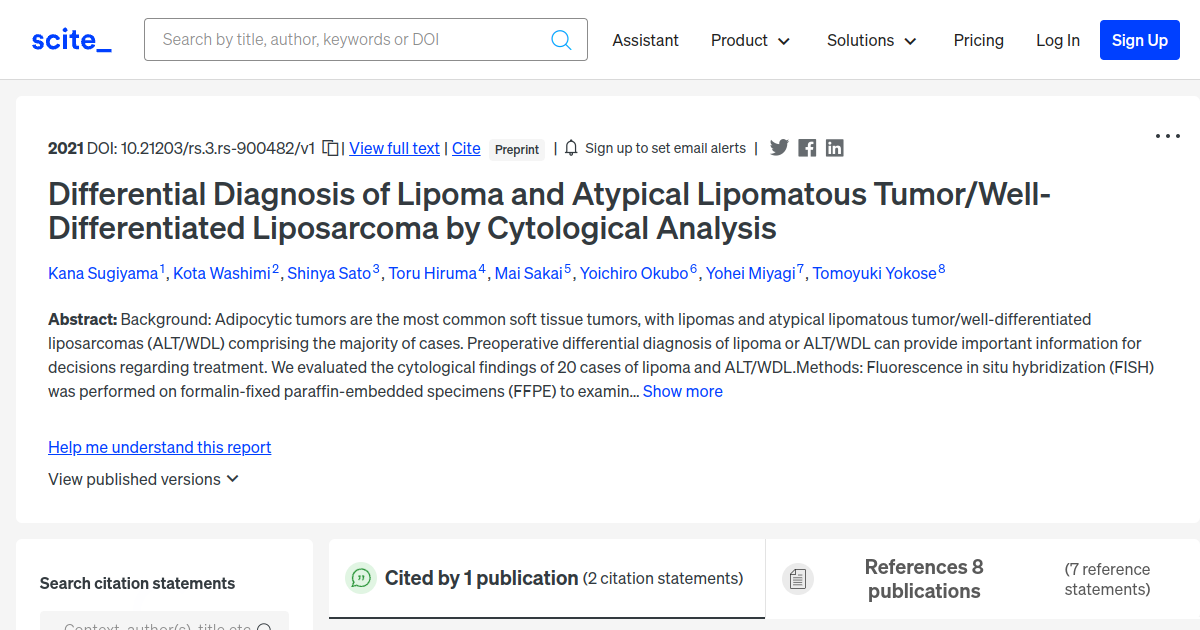 Differential Diagnosis of Lipoma and Atypical Lipomatous Tumor/Well