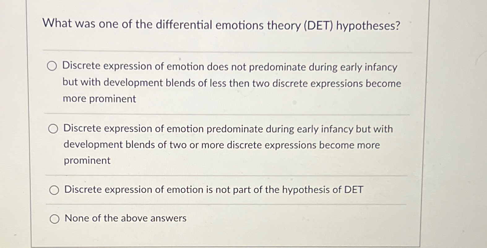 Solved What was one of the differential emotions theory
