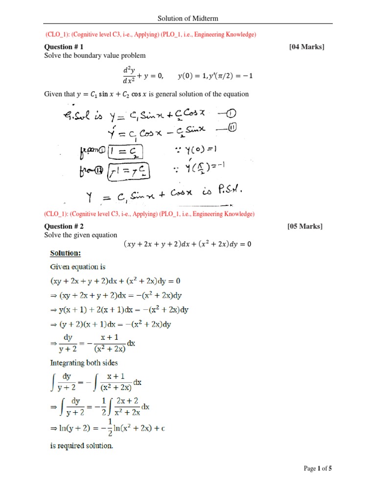 SOLUTION Partial differential equation and numerical techniques