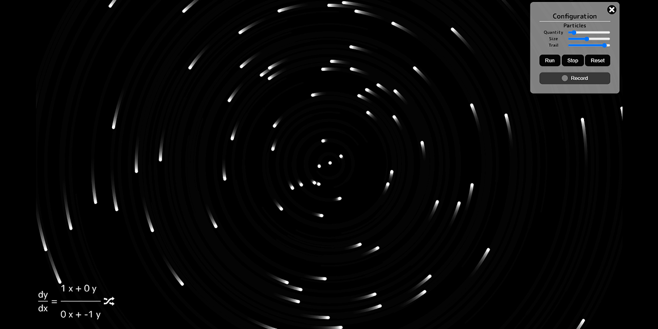A javascript app to display the slope field for an ordinary differential equation, or the. Plot a direction field for a specified differential equation and display particular solutions on it if. This page plots a system of differential equations of the form dy/dt = f(t,y). Graph functions, plot points, visualize. Explore math with our beautiful, free online graphing calculator.