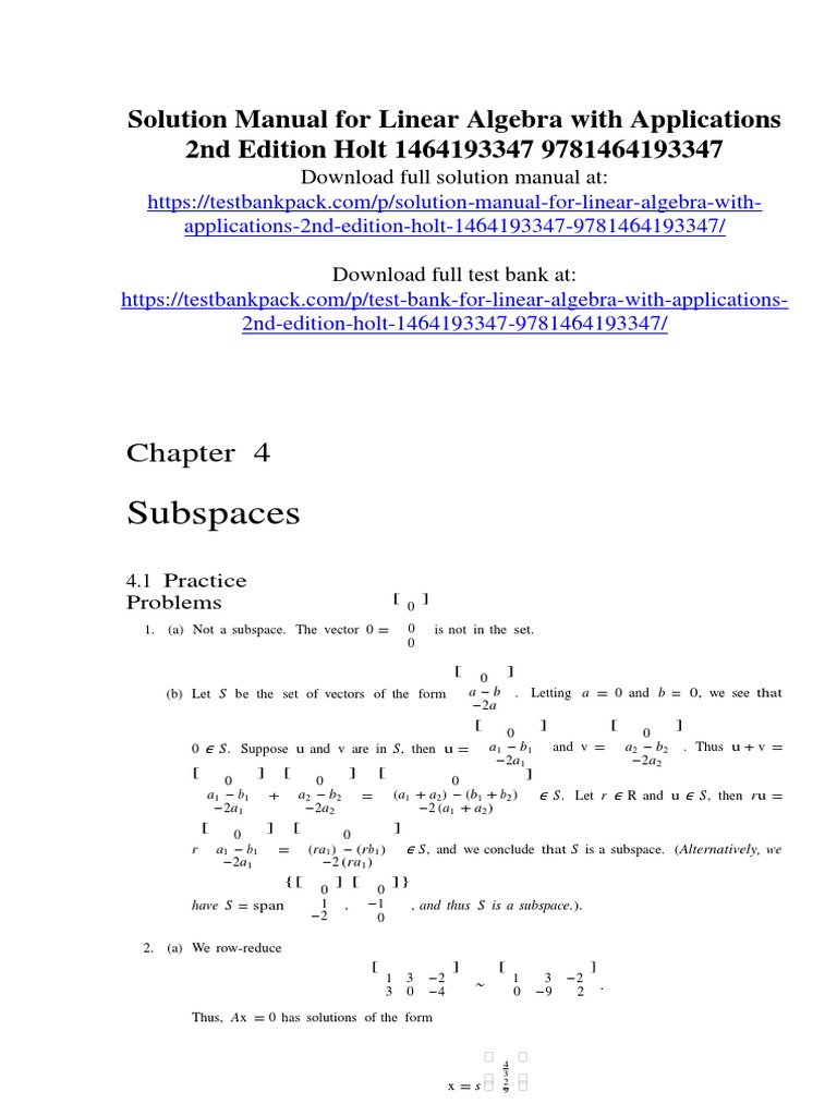 Linear Algebra With Applications 2nd Edition Holt Solutions Manual 1