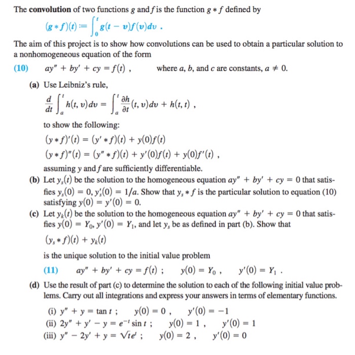 Differential Equations Convolution - Take two functions f (t) and g (t) defined for , t ≥ 0, and define the convolution 1 of f (t) and g (t) as. The convolution of f and g , denoted by f ∗ g , is the function on t ≥ 0. Let f (t) and g(t) be two functions. In this section we giver a brief introduction to the convolution integral and how it. We give a definition as well as a few examples of the convolution of two functions.