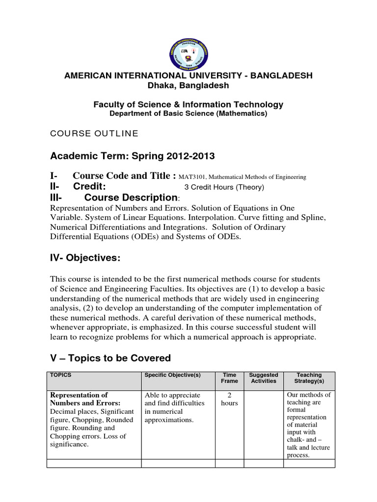 DEII courseoutline Differential Equations MTH 3205 Differential