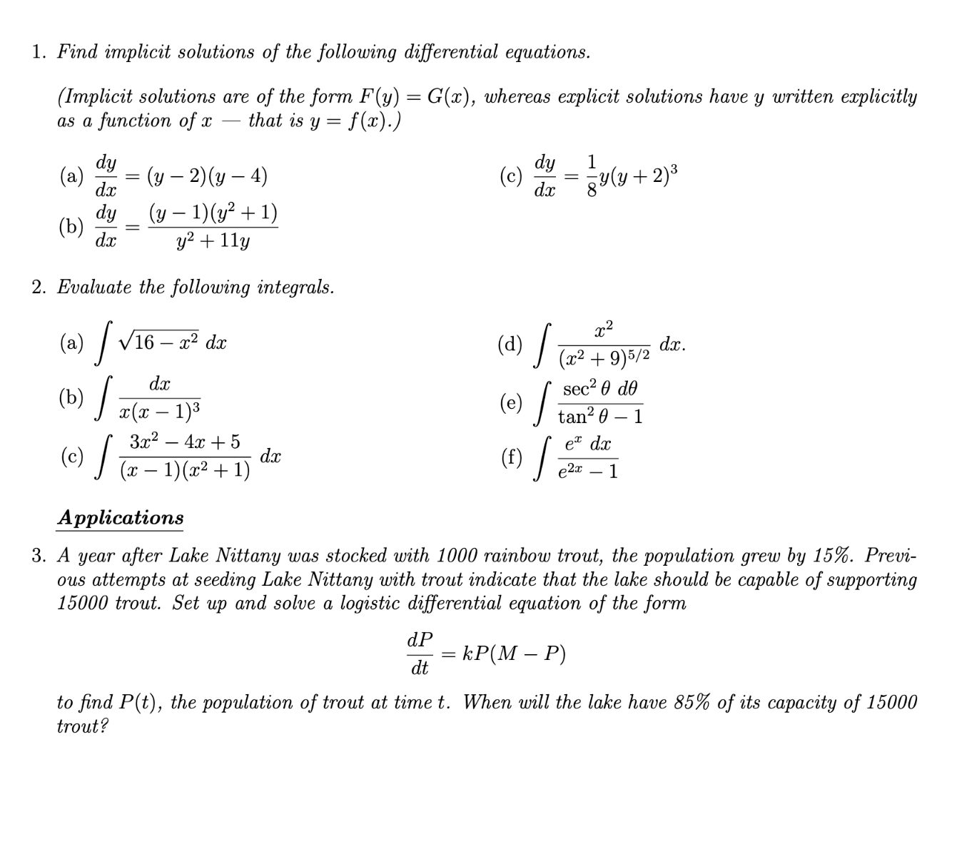 Solved 1. Find implicit solutions of the following