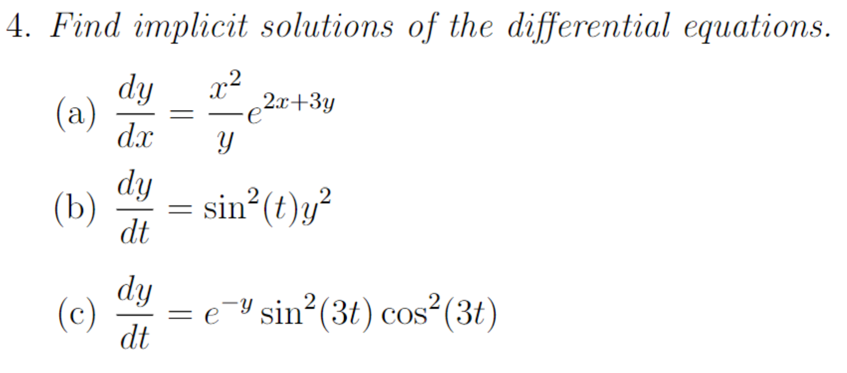 Solved 4. Find implicit solutions of the differential