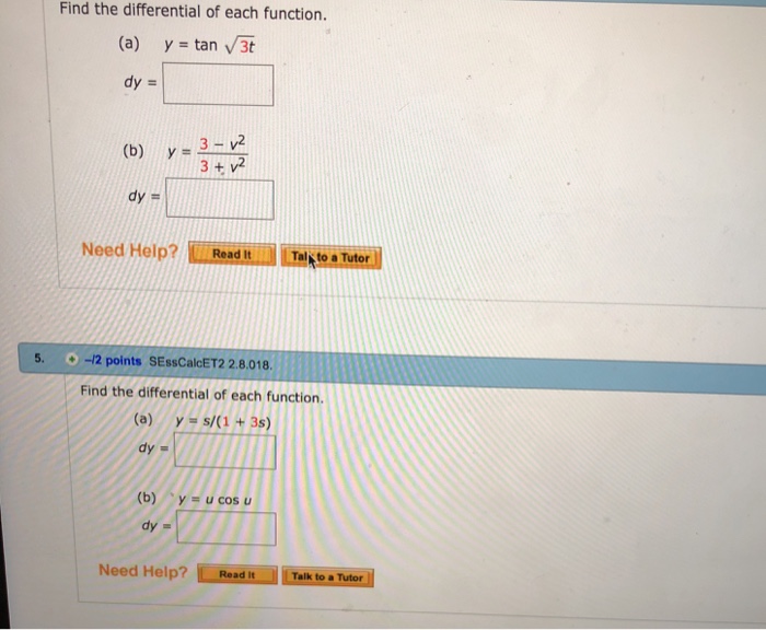 Solved Find the differential of each function. (a) y tan 3t