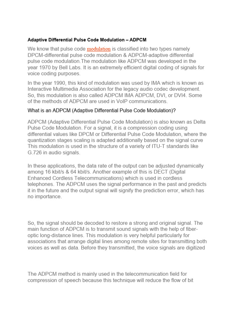 Adaptive Differential PulseCode Modulation (ADPCM) NETWORK ENCYCLOPEDIA