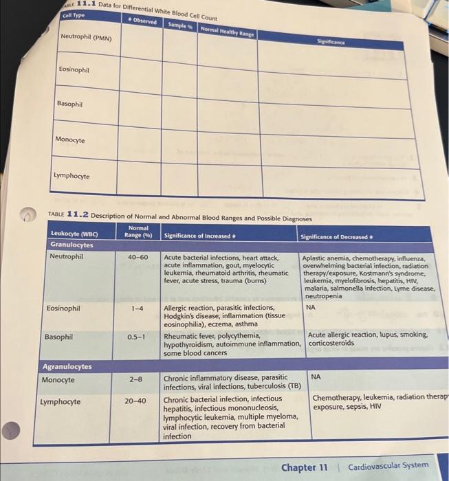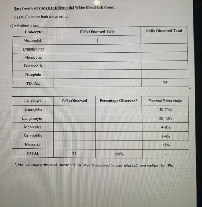 Solved 1. Differential White Blood Cell Coun Data Table. As