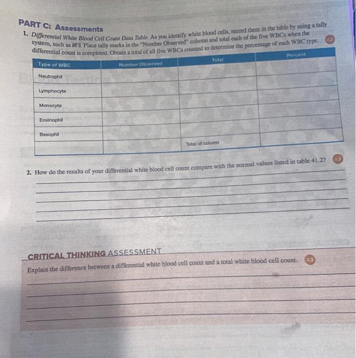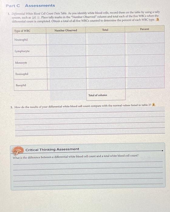 Solved PART C ASSESSMENTS 1. Differential White Blood Cell