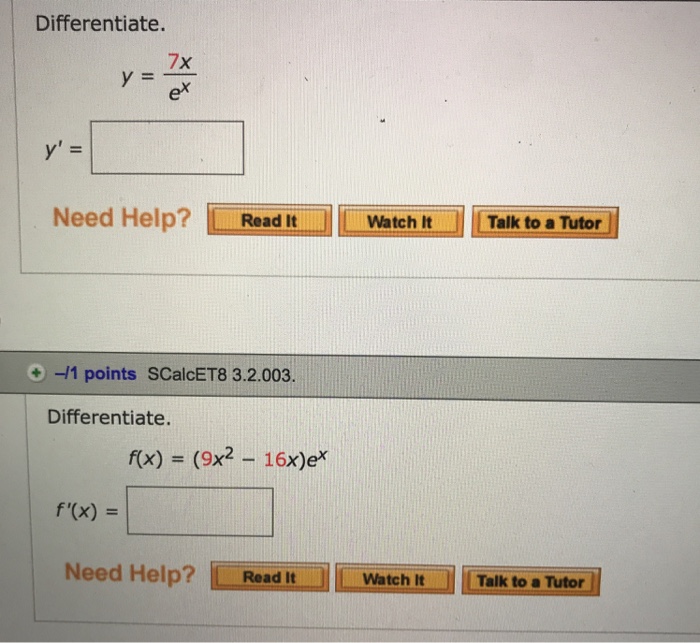 Solved Differentiate. 7x ex Need Help?Watcht Talk to a Tutor