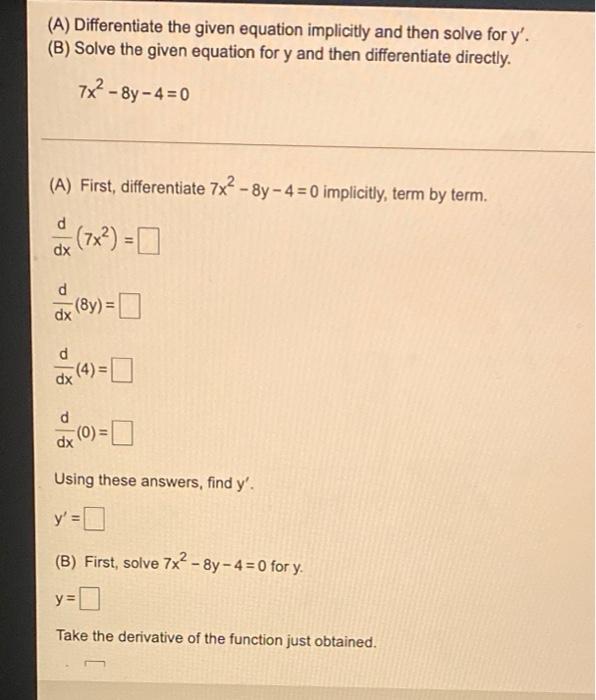 Solved (A) Differentiate the given equation implicitly and