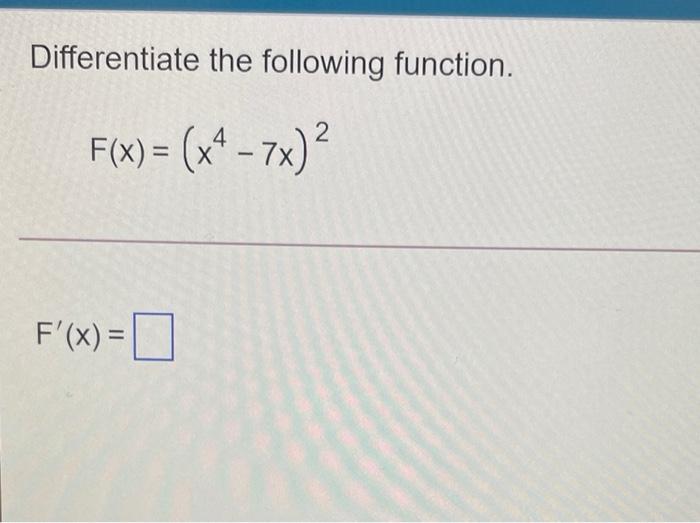 Solved Differentiate f(x)=7x f′(x)=Differentiate.
