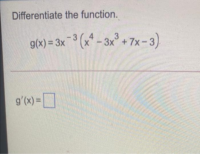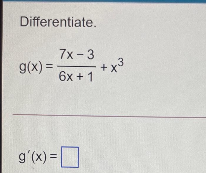 Solved Differentiate. 7X3 g(x) = 6x + 1 +x3 g'(x) = 0 =