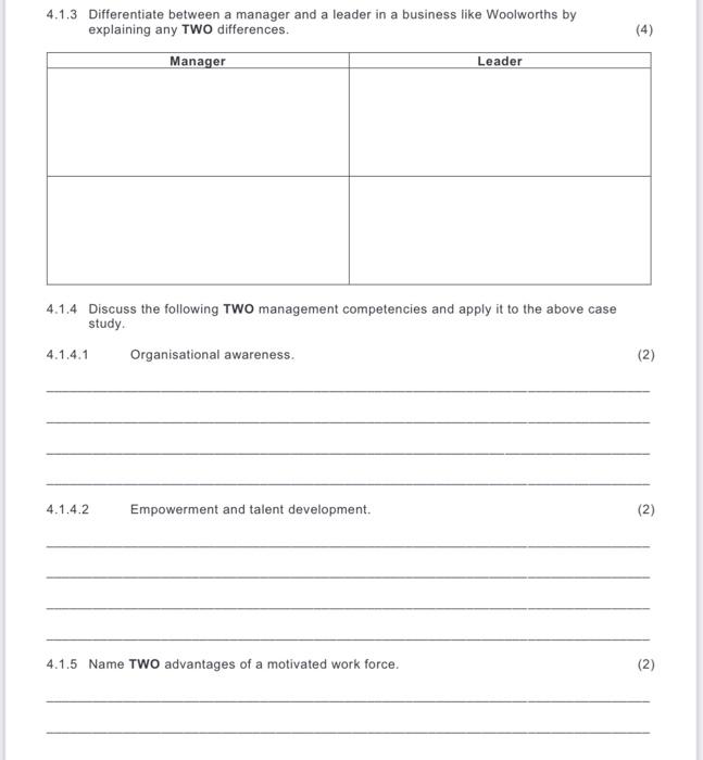 Solved 4.1.3 Differentiate between a manager and a leader in
