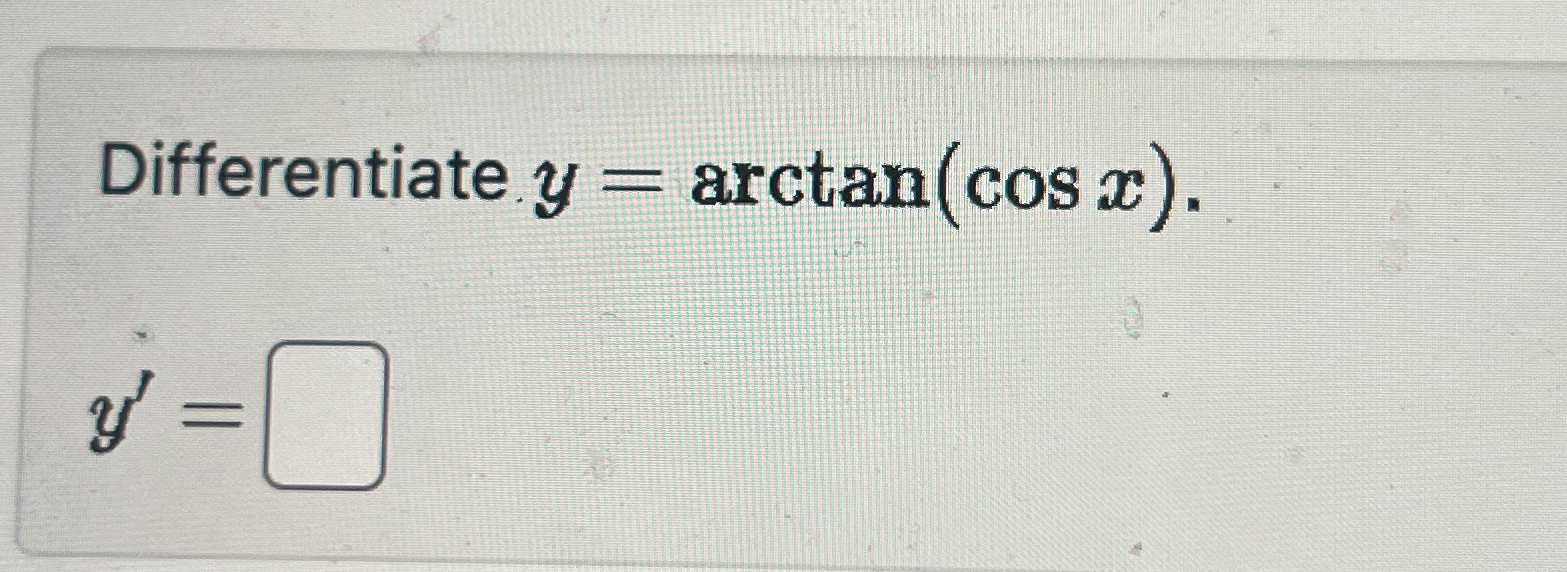 Solved Differentiate y=arctan(cosx).y'=