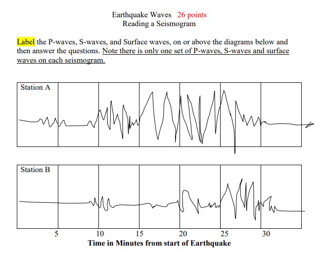 Solved Label the Pwaves, Swaves, and Surface waves, on or