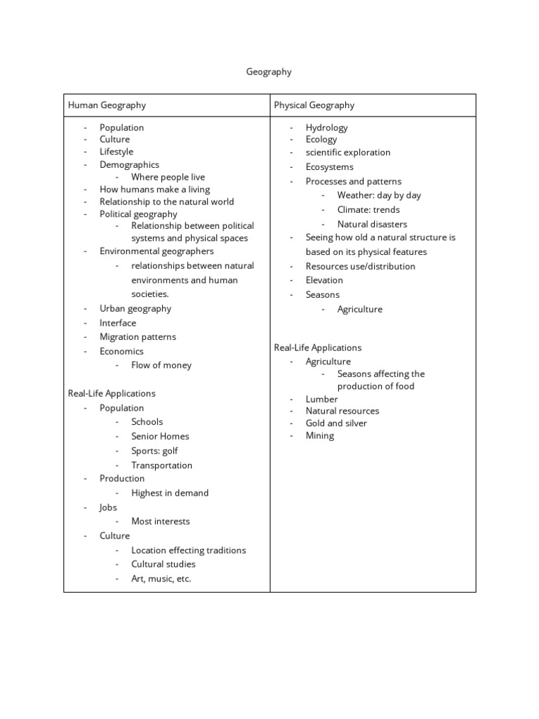 Geography Human and Physical Chart PDF Geography Environmental