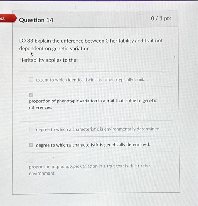 Solved LO 83 Explain the difference between 0 heritability