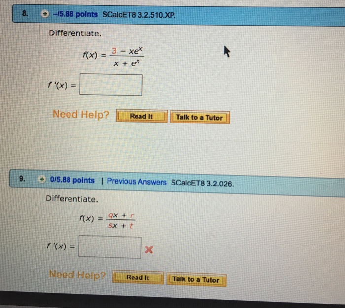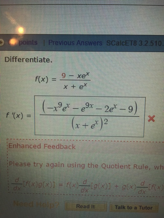 Solved Differentiate f(x)= (9xe^x)/(x+e^x)