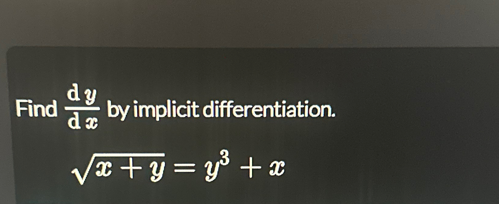 Solved Find dy(d)x by implicit differentiation.x+y2=y3+x
