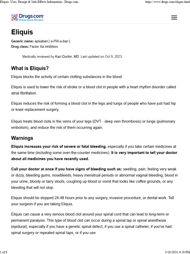 Eliquis Uses, Dosage & Side Effects Information PDF