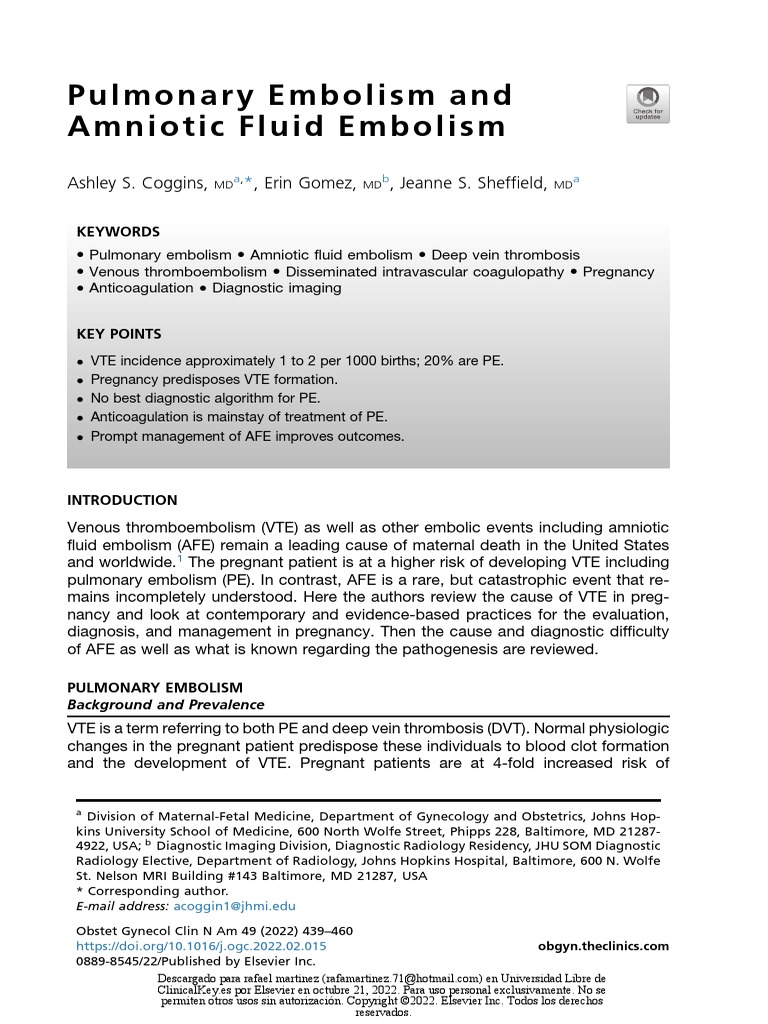 Embolia de Líquido Amniótico Descargar gratis PDF Embolia Parto