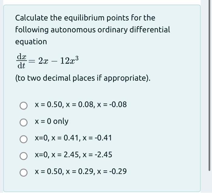 Solved Given the differential equation x’(t)=f(x(t)). List