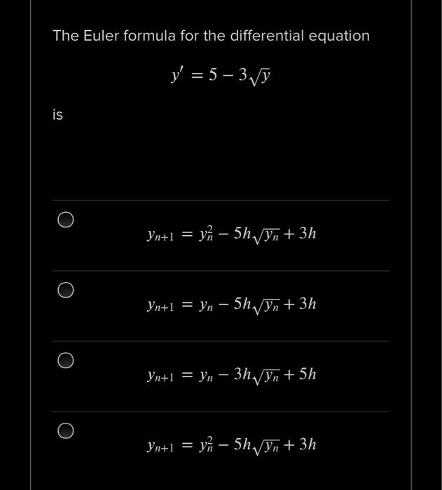 Solved The Euler formula for the differential equation