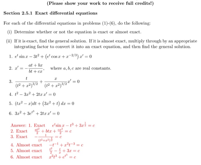 Solved Exact differential equations For each of the