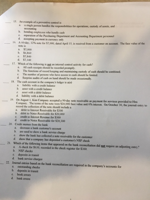 Solved An example of a preventive control is a. a single