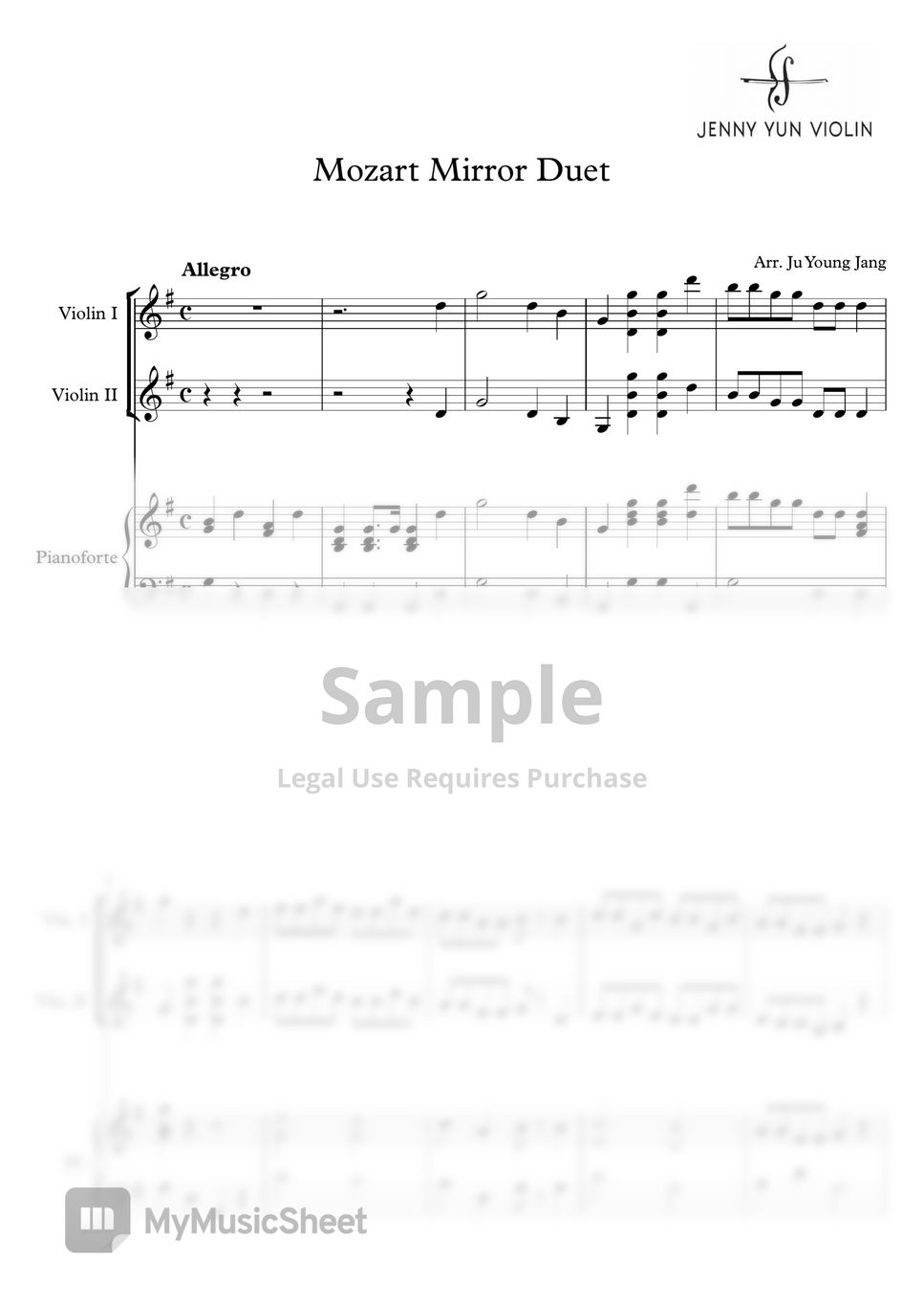 Mozart Mozart Mirror Duet (Violin Solo) Sheet by Jenny Yun