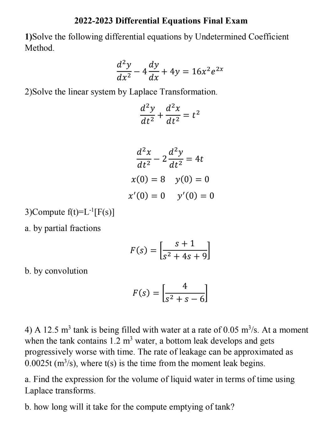 20222023 Differential Equations Final ExamSolve the