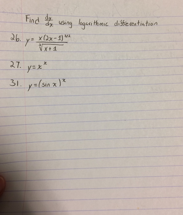Solved Find dy/dx using logarithmic differentiation. y = xx