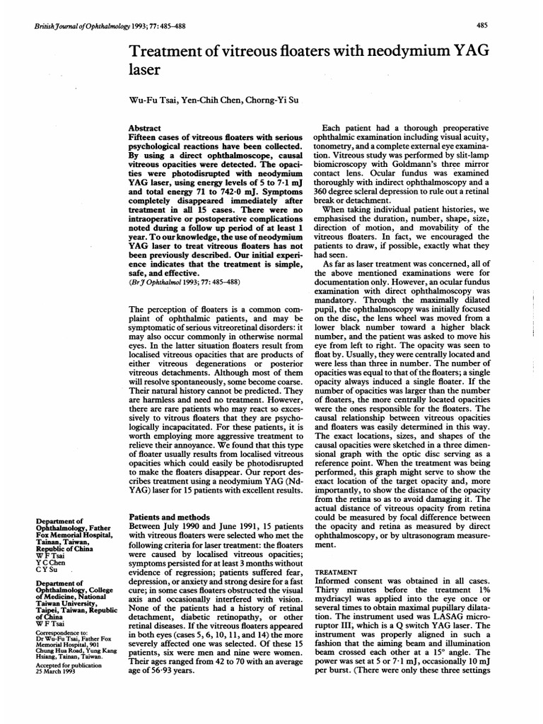 Treatment of Vitreous Floaters With Neodymium YAG Laser PDF