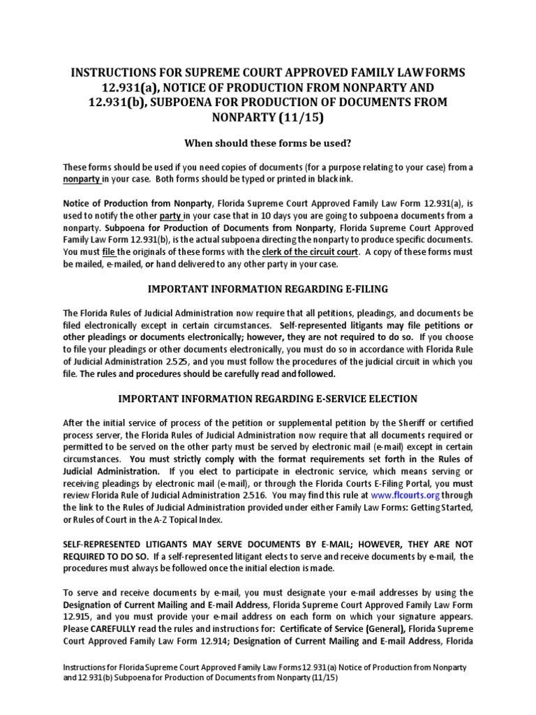 Florida Pro Se Subpoena Form From A Nonparty PDF Service Of Process